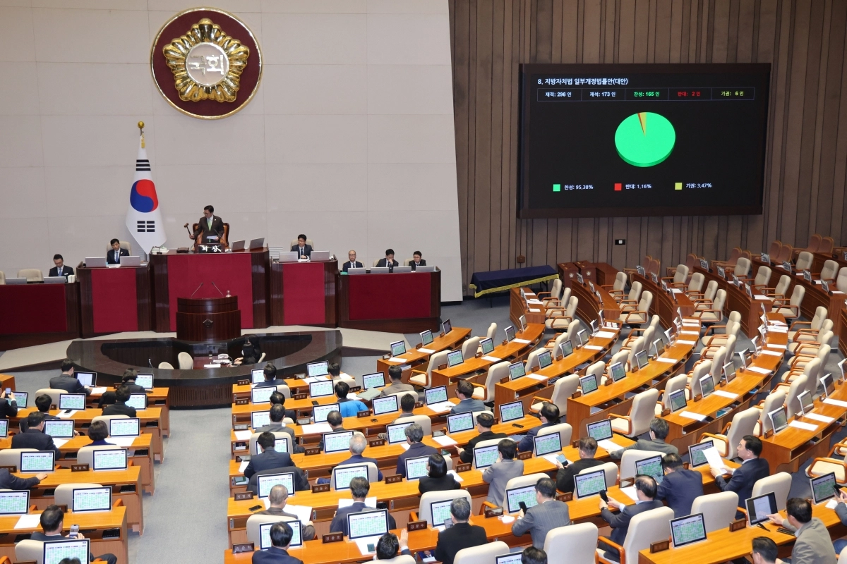 ‘행정통합 법적 근거 마련’ 지방자치법 개정안 가결
