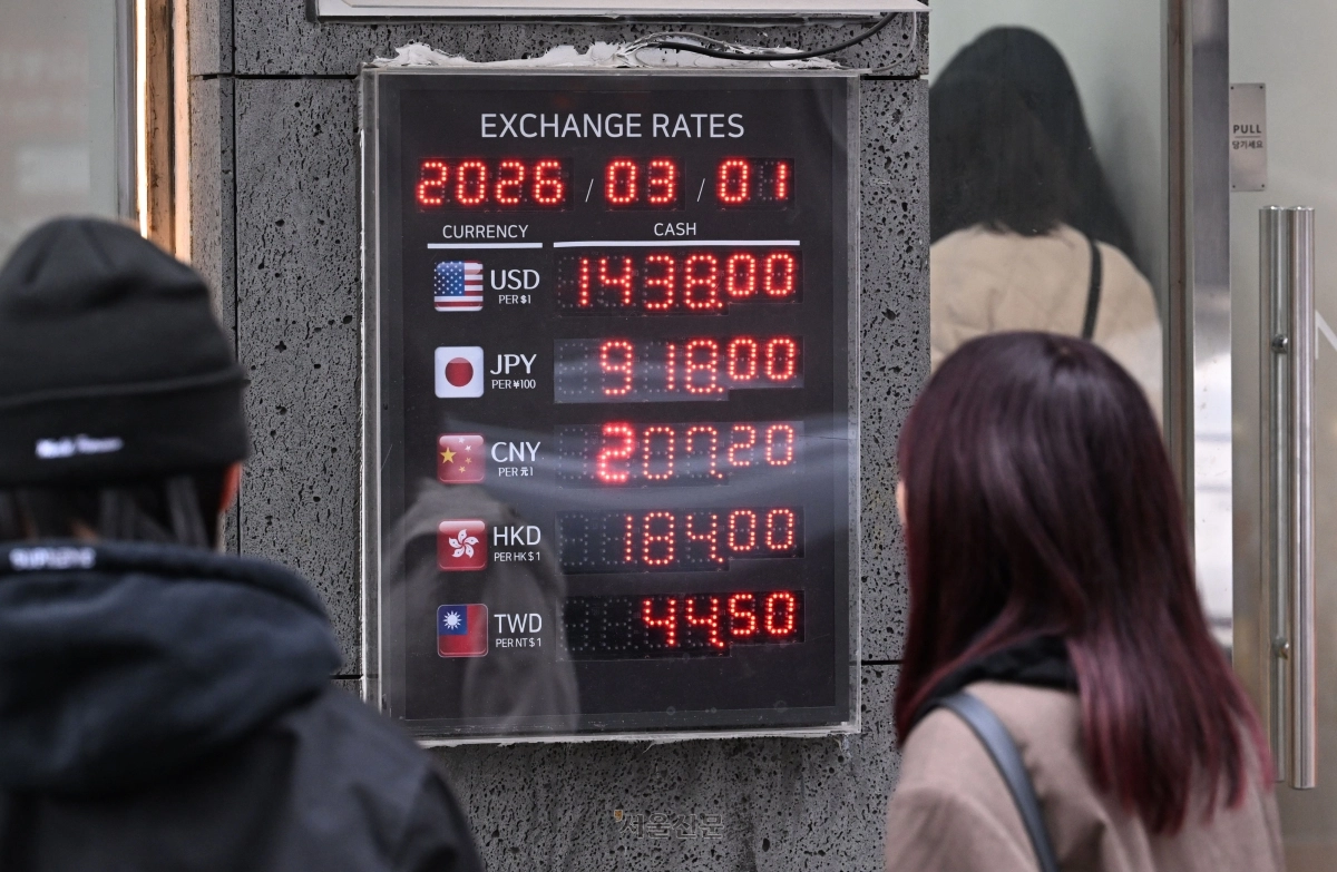 미국과 이스라엘의 이란 공격이 국내 금융시장에도 영향을 미칠 것으로 예상되는 가운데 1일 서울 명동 환전소에 원달러 환율이 표시돼 있다.