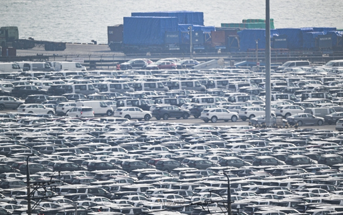 사진은 12일 경기 평택항 부두에 주차된 수출용 차량. 2026.3.12 이지훈 기자