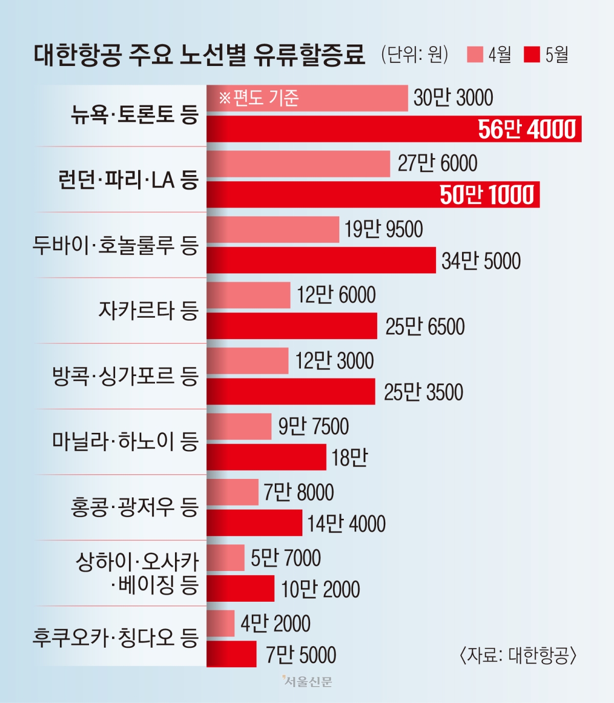 국제선 항공권 할증료 ‘역대 최고’