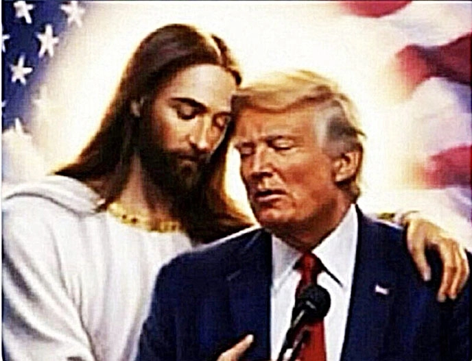 자신을 예수에 빗댄 이미지를 소셜미디어에 올려 논란을 일으킨 도널드 트럼프 미국 대통령이 15일(현지시간) 예수에게 안겨 있는 자신의 이미지를 공유했다.