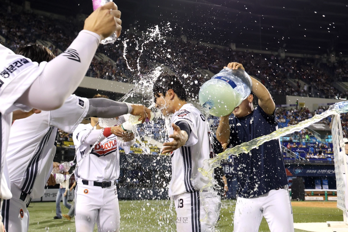 맹활약 덕분에 이유찬은 폭포에 들어간 것 같은 물세례를 받았다. 끝내기 직후 선수들이 달려와 물을 뿌린 것은 물론 방송 인터뷰를 진행하는 동안 선수들이 정수기 통에 음료를 채웠다가 인터뷰가 끝나자 기다렸다는 듯이 물을 한가득 뿌렸다.