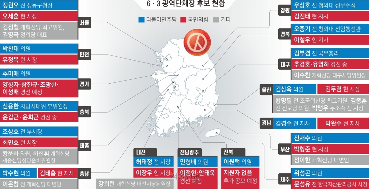 광역단체장 여야 대진표 완성 수순