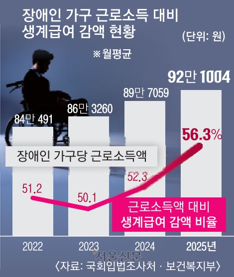 근로소득이 늘수록 생계급여가 그만큼 줄어드는 제도 탓에 장애인이 일을 해도 가난에서 벗어나기 힘든 현상이 반복되고 있다. 이처럼 근로 유인을 저해하는 복지 구조가 장애인의 사회 진출을 머뭇거리게 하는 요소가 되고 있다는 지적이 나온다.
