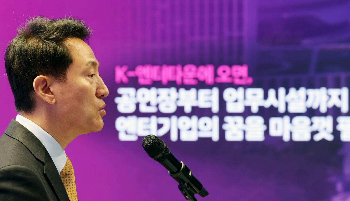 오세훈 서울시장이 21일 서울시청 지하1층 서울갤러리 내친구서울 1관에서 열린 창동 K-엔터타운 조성 기자설명회에서 발언하고 있다.
