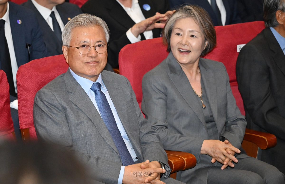 문재인 전 대통령과 김정숙 여사가 27일 오후 서울 여의도 국회 의원회관에서 열린 4.27 판문점 선언 8주년 기념식에 참석하고 있다. 2026.4.27 안주영 전문기자