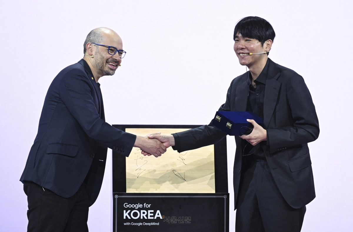 29일 서울 중구 웨스틴 조선호텔에서 열린 ‘구글 포 코리아 2026’ 현장은 10년 전 인류와 인공지능(AI)의 역사적 대결을 회고하는 열기로 가득했다. 당시 바둑판 위에서 승부를 겨뤘던 데미스 허사비스 구글 딥마인드 CEO와 이세돌 9단은 10년 만에 다시 마주 앉아 손을 맞잡았다. 2016년 ‘구글 딥마인드 챌린지 매치’에서 인간과 기계의 자존심을 걸고 싸웠던 두 주역이 10년 만에 경쟁자가 아닌 대담자로 재회한 순간이었다.