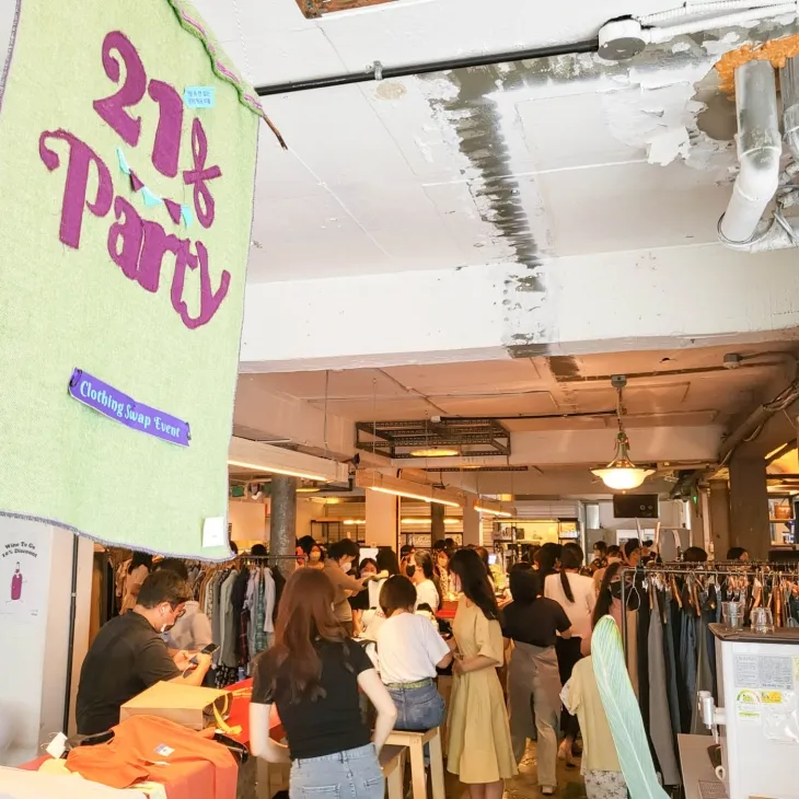다시입다연구소가 개최한 ‘21%파티’ 에서 참가자들이 중고 의류를 고르고 있다. 다시입다연구소 제공