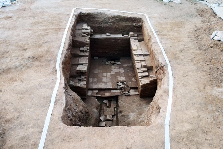 충남 공주시에 있는 ‘교촌리 벽돌무덤’ 발굴 현장 모습.