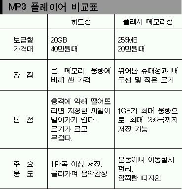 MP3가 음악과 영상을 동시에 재생하는 멀티미디어 기기로 진화하면서 하드형과 플래시 메모리형은 MP3의 생산량과 판매량을 양분할 전망이다.