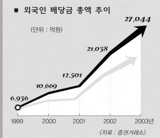 조지 소로스의 퀀텀인터내셔널펀드가 대주주(25.68%)인 서울증권은 2001년 액면가(2500원)의 60%인 주당 1500원을 배당했다. 총 배당액은 801억원으로 소로스는 276억원을 고스란히 챙겼다. 하지만 그해 서울증권의 당기순이익은 471억원에 불과했다.2002년에는 주당 140원 배당을 해 소로스가 20억원을 받아갔다. 서울증권은 지난 9월에는 “재무구조를 개선하겠다.”며 서울 여의도 사옥을 947억원에 팔았다.