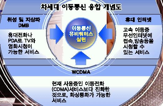 올해에는 유선과 무선은 물론 통신·방송 서비스 융합에 가속도가 붙을 전망이다. 그동안 어렴풋이 접해 왔던 ‘유비쿼터스’가 실현되는 한해가 될 것으로 기대된다. 업계는 디지털미디어방송(DMB), 휴대인터넷(와이브로), 한때 ‘꿈의 이동통신’으로 불리다가 주춤거렸던 광대역코드분할다중접속(WCDMA) 서비스가 기존 서비스의 대체 또는 보완 서비스로서 자리할 것으로 보고 있다. 이들은 모두 어느 장소이든 화상인터넷도 하고 질 좋은 방송도 볼 수 있는 지금보다 진화한 서비스다. 당분간 독자적인 영역을 구축하겠지만 1∼2년안에 통신·방송 융합서비스로 시장통합이 될 가능성도 점쳐진다.