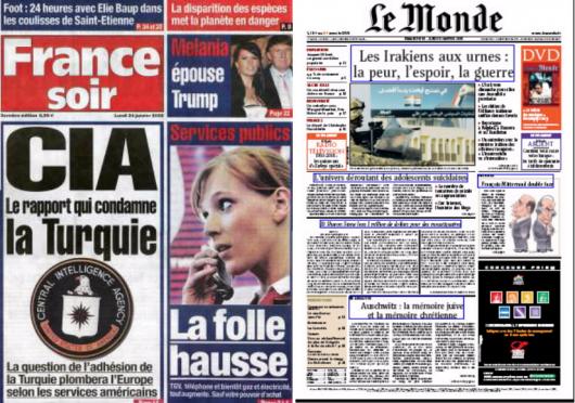대표적인 신문은 ‘르몽드’와 ‘프랑스 스와르’. 최고의 부수(39만부)를 자랑하는 유력지 르몽드는 지난달 25일 자부터 새로운 편집을 선보이고 있다. 지난 연말 취임한 제라르 쿠르트와 편집국장 체제의 첫 가시적 효과이며 오는 가을로 예정된 지면혁신에 앞선 사전 작업이다. 르몽드는 “독자들이 기사의 중요도를 쉽게 취사선택할 수 있도록 하면서 더욱 절제되고, 더욱 읽기 쉬운 신문을 만들기 위한 변화”라고 설명했다.
