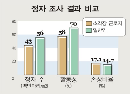 하지만 연구팀 스스로는 조심스러운 해석을 내놓았다. 고려대 의대 이은일 교수는 “소각장 근로자 조사대상자는 모두 31명이었지만 정액 채취를 허락한 근로자는 여섯 명에 그쳐 충분한 샘플을 확보할 수 없었다. 앞으로 좀더 많은 집단에 대한 후속 연구가 이뤄져야 할 것”이라고 말했다.