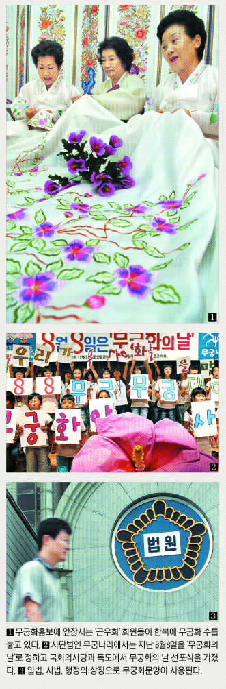 그럼에도 불구하고 현재 무궁화는 국가기관의 문양 등에 사용되고 애국심을 고취시키는 마케팅에도 여전히 자주 등장하고 있다. 대표적으로 국가의 3권인 행정부와 사법기관인 법원, 그리고 입법기관인 국회는 무궁화 안에 약자를 넣어 문양을 만들어 사용하고 있다. 그뿐 아니라 각종 훈장과 계급장에도 무궁화가 사용된다. 국가에서 수여하는 훈장 중에서 가장 권위가 있는 것이 ‘무궁화대훈장’이다. 국화로서의 위상을 엿볼 수 있는 사례다.