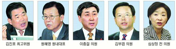 현재 당내에서 자천타천으로 거론되는 인사들은 지난 정권에서 경제 및 교육 부총리를 지낸 김진표(경기 수원 영통) 최고위원,여당과의 법안 전쟁을 진두지휘하고 있는 원혜영(부천 오정) 원내대표,대한농구협회 회장인 이종걸(안양 만안) 의원,국회 교육과학기술위원장인 김부겸(군포) 의원 등이다.