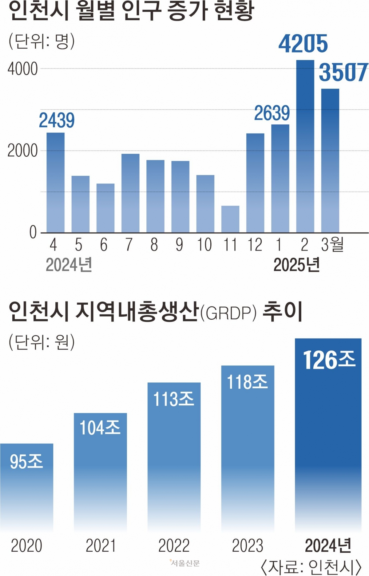 2024년 지역내총생산(GRDP)은 126조 원으로 전년 대비 8조 원 증가했다. 2021년 처음 100조 원을 돌파한 GRDP는 2022년 113조 원, 2023년 118조 원으로 꾸준한 증가세다. 산업별로는 제조업과 운수업이 인천 경제를 견인한 것으로 조사됐다. 제조업은 석탄, 석유화학, 의약품·바이오 등 주력 산업이 7.7% 성장했으며 인천공항과 인천항을 중심으로 운수업도 6.8% 성장했다.