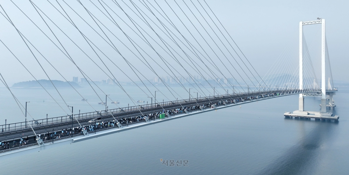 29일 인천 서구 청라하늘대교에서 열린 ‘2026 청라하늘대교 마라톤’에 참가한 달림이들이 힘차게 달리고 있다. 2026.3.29 도준석 전문기자