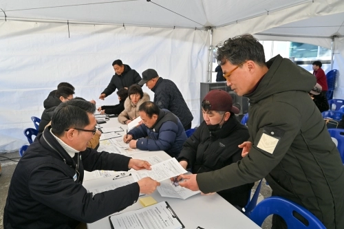 강원 정선군이 2025년 12월 22일 정선읍행정복지센터에서 농어촌 기본소득 신청을 받고 있다.