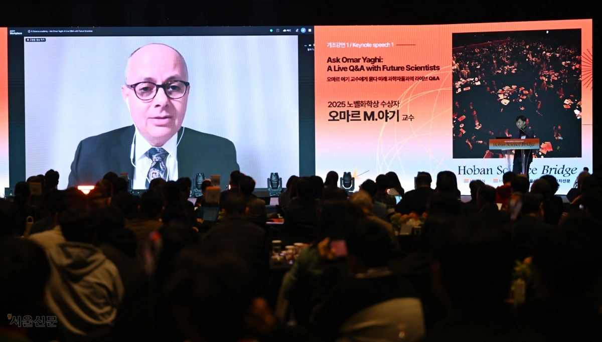 노벨 화학상 수상자인 오마르 M 야기 캘리포니아대(UC) 버클리 화학과 교수는 26일 서울 중구 신라호텔에서 열린 ‘K-과학인재 아카데미 비전 선포식’에서 “연구자에게 가장 중요한 것은 회복력”이라고 강조했다.