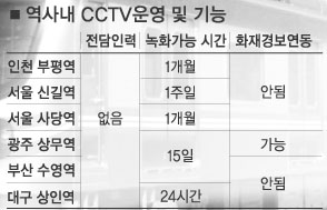 현재 국내 역사에는 CCTV가 최소 2대씩 설치돼 있지만 열차 외부상황만 파악할 수 있고 열차 내부를 확인할 수 있는 CCTV나 모니터는 전무하다. 설치 규정이나 기준도 없다.