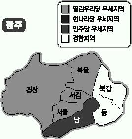 전남에선 민주당의 ‘서부 강세,동부 약세’가 이어질 전망이다.이는 DJ-한화갑으로 이어지는 서부지역의 전통 지지표와 정당보다는 ‘지역 일꾼론’으로 맞선 전략이 갈수록 효과를 내고 있기 때문으로 민주당은 분석했다.
