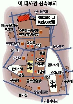 이에 앞서 미국은 주한 미 대사관과 직원 숙소의 신축 부지로 캠프 코이너를 수용하겠다는 의사를 밝혔다.