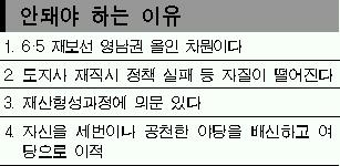 야당,특히 한나라당은 6·5지방 재·보선에 ‘올인’하는 차원에서 김혁규 카드를 뽑아들었다며 의구심을 보내고 있다.홍준표 의원은 “결국 동진(東進)정책의 일환이 아니냐,경남이나 TK 정서를 흔들려는 의도 아니냐는 시각이 많다.”고 말했다.겉으로는 상생의 정치를 외치면서 실제로는 정치기반 강화를 위해 야당의 반대를 무릅쓰고 밀어붙이는 노 대통령의 정치행태가 보다 심각한 문제라는 시각이다.