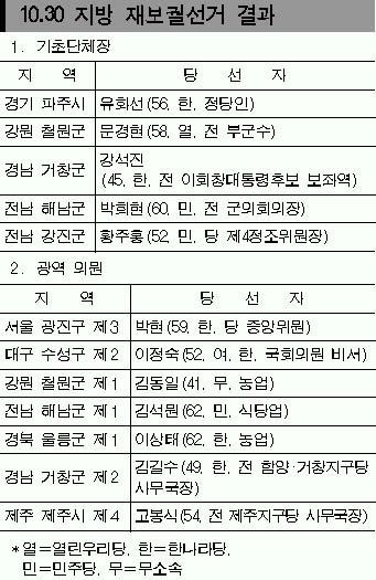 10·30 지방재보선에서 기초단체장 두 명을…