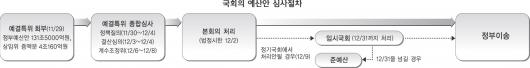 따라서 예산안은 정기국회 내 처리가 어려울 것이란 전망에 무게가 실린다. 그렇게 되면 여야는 예년처럼 임시국회를 소집해야 한다. 이 경우 소위 ‘크리스마스 국회’가 될 가능성이 높다. 지난해에도 12월30일에 가서야 예산안이 통과됐다. 물론 임시국회를 열어 12월31일 자정까지만 처리하면 된다. 그러나 파생되는 문제는 심각하다. 특히 12월17일까지 지방자치단체는 예산을 확정해야 하는 데 국회가 예산안 심사를 미루면 자연히 순연돼 애를 먹게 된다.