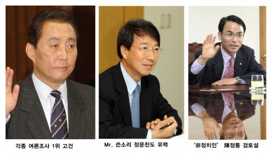 특히 고건 전 국무총리의 ‘강세’도 ‘제3 후보설’ 확산에 결정적으로 한몫하고 있다. 고 전 총리는 지난 5월 총리직 사퇴 이후 현실 정치와 거리를 두고 있는 데도 각종 여론조사에서 ‘가장 호감이 가는 차기 대권주자’로 잇따라 선정되고 있다.