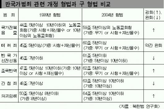북한은 지난 1999년 이후 5년 만에 개정된 형법에서 8장 161개 조항을 9장 303조항으로 늘렸다. 형벌 분야에서 경미한 범죄는 노동단련형(3년 이내 단기형)이 추가됐다.