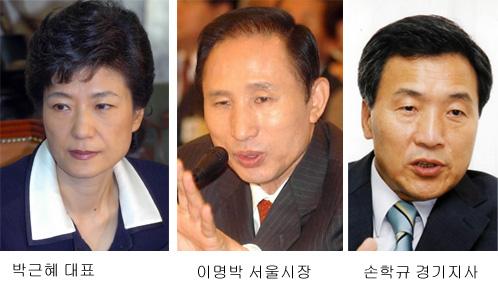 박 대표에 비해 당내 기반이 취약한 이 시장과 손 지사는 당내 기반 확대에 주력하고 있다. 특히 양측에선 박근혜 대표가 추진하는 당 쇄신작업이 자칫 ‘사당화(私黨化)’로 변질되지 않을까 우려하는 기색이 역력하다.