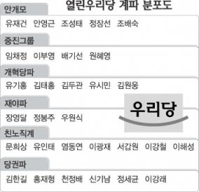 특히 내분 봉합과정에서 원내대표 후보에 정세균 의원, 당 의장감으로 문희상·한명숙 의원 등 온건적 실용주의자들이 부상하면서 개혁을 주장해 온 강경파의 입지는 좁아지는 형국이다. 이런 분위기를 반영하듯 최근 당 정책위원회가 국가보안법 등 쟁점법안의 처리 시기와 관련, 강경파들이 주장해 온 ‘2월 임시국회’를 못박지 않고 ‘올해 추진 법안’이라고 표현했다.