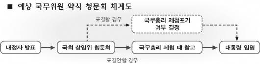 국무위원에 대한 국무총리의 제청 이전에 국회 상임위 차원에서의 청문회에 이은 표결을 실시하자는 것이다. 즉 의결권을 주자는 이야기다. 위헌 가능성에 대해서는 “해당 상임위에서 표결처리한 뒤 가결되면 총리가 제청하면 문제가 없을 것”이라고 말했다. 물론 부결되면 국무총리가 제청을 포기하면 된다는 주장이다.