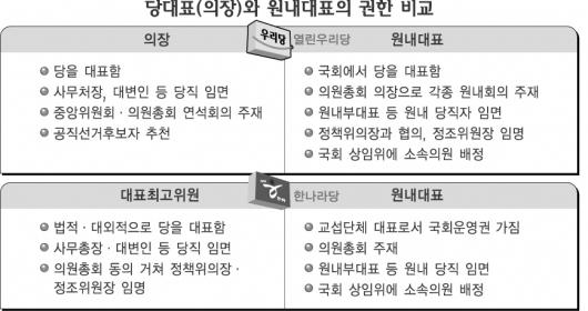 이와 함께 당 대표가 원내대표보다 우위에 있는 것처럼 당헌에 애매하게 규정한 것도 이런 구습에 ‘정통성’을 부여했다.
