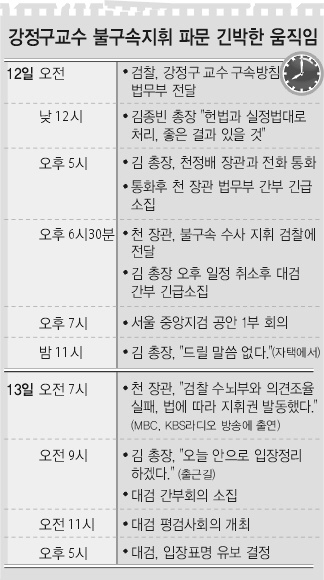 김 총장의 입장표명이 하루정도 미뤄진 것은 이번 일이 앞으로도 전례로 남을 수 있어 검사 전체의 의견을 존중하겠다는 뜻으로 풀이된다. 여기에는 신중한 김 총장의 성격도 일정 정도 영향을 미친 것으로 보인다. 김 총장은 13일 출근하면서 “오늘 중으로는 결론날 것”이라고 언급했다. 하지만 검사들의 의견을 들어본 결과, 하나의 결론에 쉽게 도달하기가 쉽지 않았다.