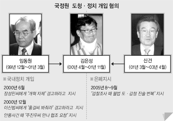또 신씨가 국정원 직원들에게 도청사실 은폐를 지시한 점 등도 영장 청구에 고려됐다. 검찰 관계자는 “국정원장들이 도청 사실을 인정하고 국민에게 사과하는 모습을 기대했지만 도청을 부인하는 종전 입장을 바꾸지 않았다.”고 말했다.