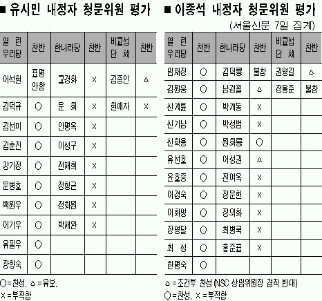 유 내정자는 ‘왕의 남자’로 비견되는 ‘코드 논란’과 함께 전문성·자질을 놓고도 호된 신고식을 치렀다. 이례적으로 일부 여당 의원들까지 공격에 가세하면서 청문회는 여야간 및 여여간 갈등 양상을 보였다.