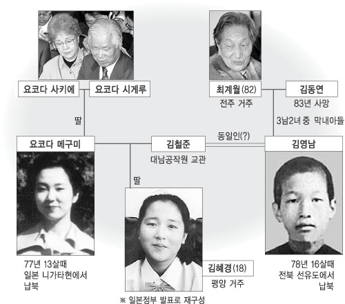 요코다 메구미는 1977년 일본 니가타현에서 실종됐다. 김정일 북한 국방위원장은 2002년 북·일 정상회담에서 요코다 납치 사실을 시인했다. 북한은 요코다가 1986년 현지에서 김철준과 결혼해 이듬해 딸 혜경양을 낳았으며 94년 자살했다고 발표했다.