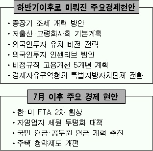 주요 경제정책들이 표류하고 있다.‘5·31’ 지방선거 이후 책임 소재를 놓고 당·정·청이 ‘엇박자’ 행보를 보이는 가운데 유가와 환율, 국제금리 등의 대외 여건마저 개선될 기미가 보이지 않는다.