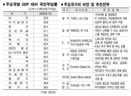 두번째는 부족한 재원을 모두 조세로 충당하는 방안이지만 선택하기가 쉽지 않다. 납세자들의 저항이 거셀 것으로 예상되기 때문이다. 정부의 추산대로라면 2003년 현재 20.4%인 조세부담률이 2011년 이후에는 2%포인트 늘어나는 셈이다.