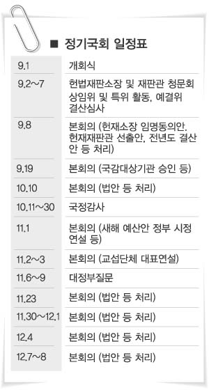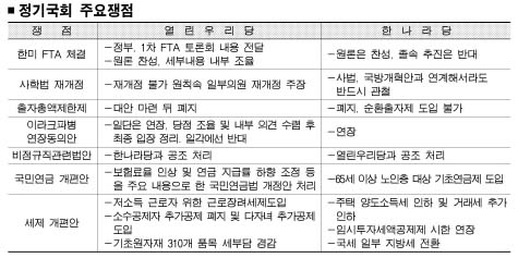 내년 대통령 선거를 앞두고 사실상 17대 국회의 마지막 정기국회인 만큼 여야 모두 정치적 성과를 극대화할 방안을 모색하고 있다. 비정규직 3법, 출자총액제한제, 사립학교법 개정여부, 한·미자유무역협정(FTA) 등 민감한 현안이 산재해 충돌의 가능성도 배제하기 어렵다.