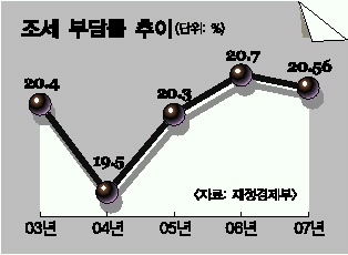 따라서 조세부담률이 올라가면 GDP 증가분보다 세금 증가분이 많은 것으로 세부담이 커지고,거꾸로 내려가면 경제성장에 비해 국민 전체의 세부담이 상대적으로 완화됐다는 뜻이다.