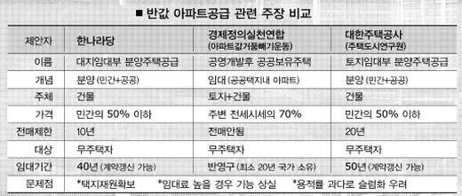 ‘토지임대부 분양주택’(반값 아파트) 공급 문제가 이슈로 부각되고 있다. 정치권과 정부기관은 물론 시민단체도 ‘반값 아파트’ 문제를 놓고 백가쟁명(百家爭鳴)식 주장을 펴고 있다.