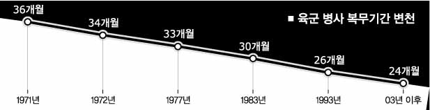 지난주 청와대가 이달 말까지 병 복무기간 단축을 골자로 한 병역제도개선안을 내놓겠다고 밝힘에 따라 복무단축의 규모와 시행시기에 관심이 증폭되고 있다.