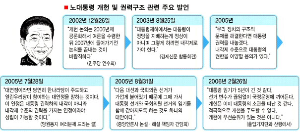 박근혜 전 대표와 이명박 전 서울시장, 손학규 전 경기지사 등 한나라당 ‘빅3’는 노 대통령의 개헌 제안을 ‘정략적 술수’로 보고,“차기 정권에서 논의해야 한다.”며 반대 입장을 분명히 했다.