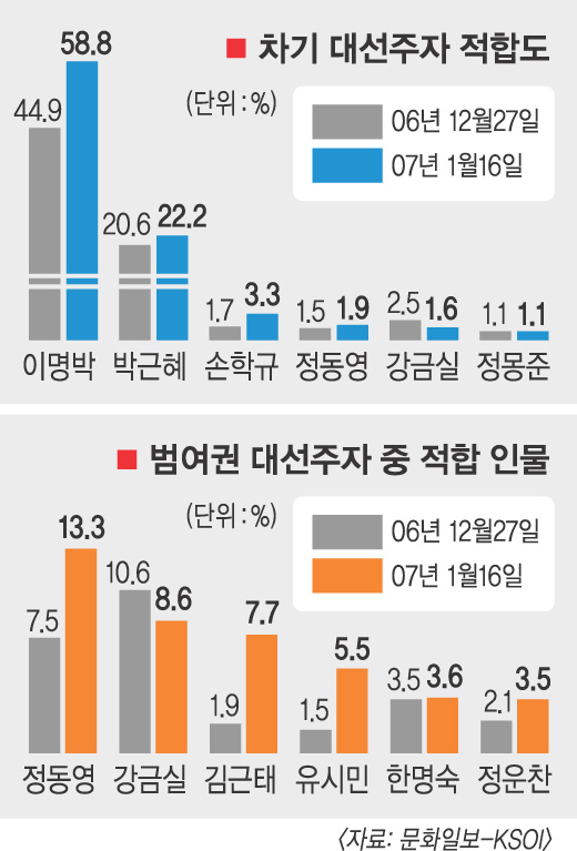 차기 범여권의 유력한 후보에 대해서는 누구도 단언하지 않았다. 고 전 총리의 포기로 반사 이익을 볼 것으로 예상되는 정동영 열린우리당 전 의장을 비롯한 현재 거론되는 여권 후보들에 대해서는 회의적이었다. 이영남(66)씨는 “정동영, 김근태, 강금실은 무게감이 없다.”면서 “이런 식이면 조순형이든 누구든 민주당이 후보 내면 찍겠다.”고 잘라 말했다.