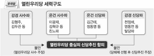 결국 22일 중국에서 귀국하는 염동연 의원 등 초선들의 선도탈당 결행 여부와 동조 규모, 노 대통령이 25일 신년기자회견 등에서 탈당파를 제압할 만한 또 다른 ‘카드’를 내놓을지 여부, 그리고 강경 사수파가 계속 반발해 신당파에 탈당 명분을 ‘헌납’할지 등에 탈당 정국의 향배가 달렸다고 할 수 있다.