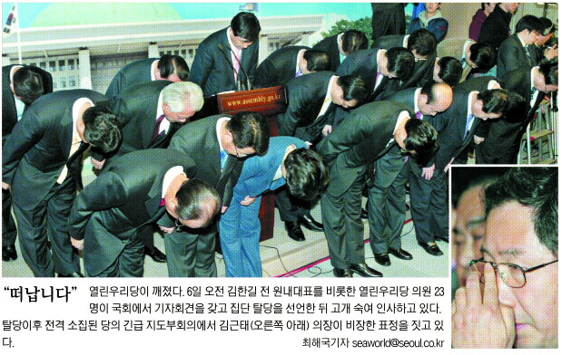 우리당 23명 집단 탈당… 정계개편 경쟁구도로
